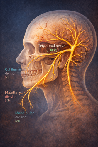 • o nervo trigêmeo, responsável pela sensibilidade do rosto, mandíbula e cabeça;